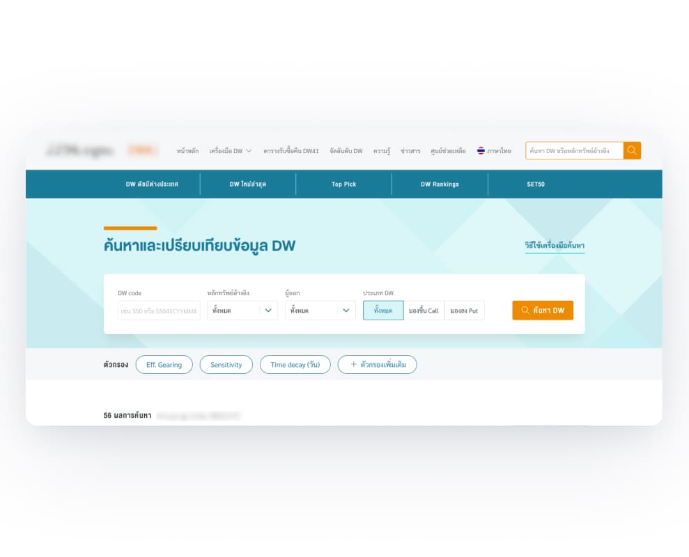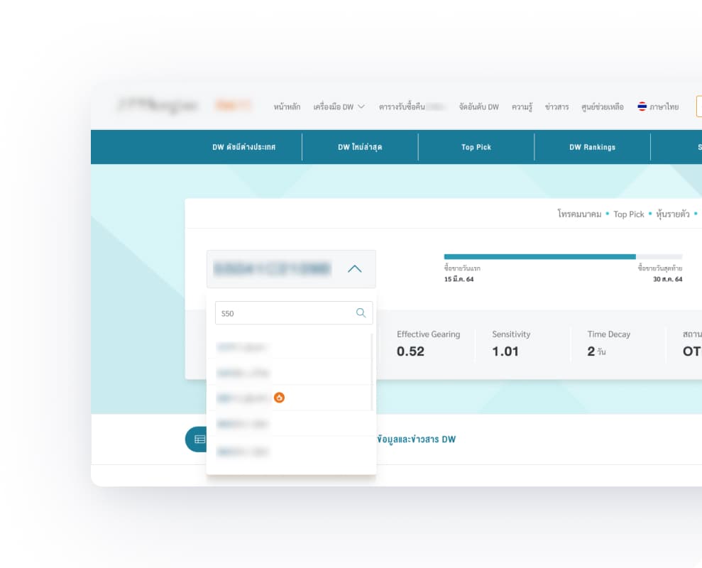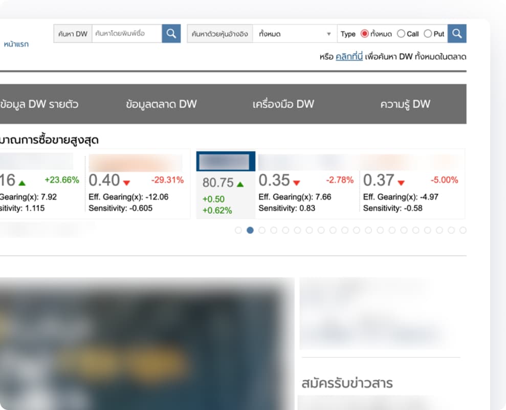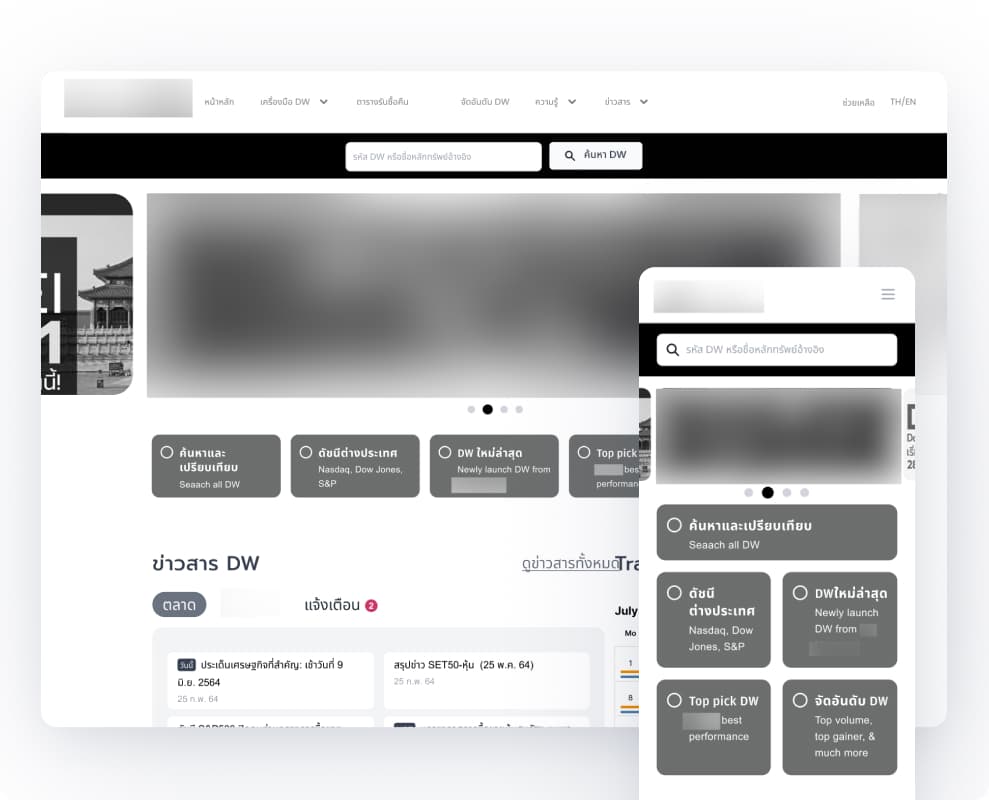 A leading Thai financial institute approached us to redesign their derivative warrants (DW) website. The existing site was visually outdated, information-heavy, and difficult to navigate.