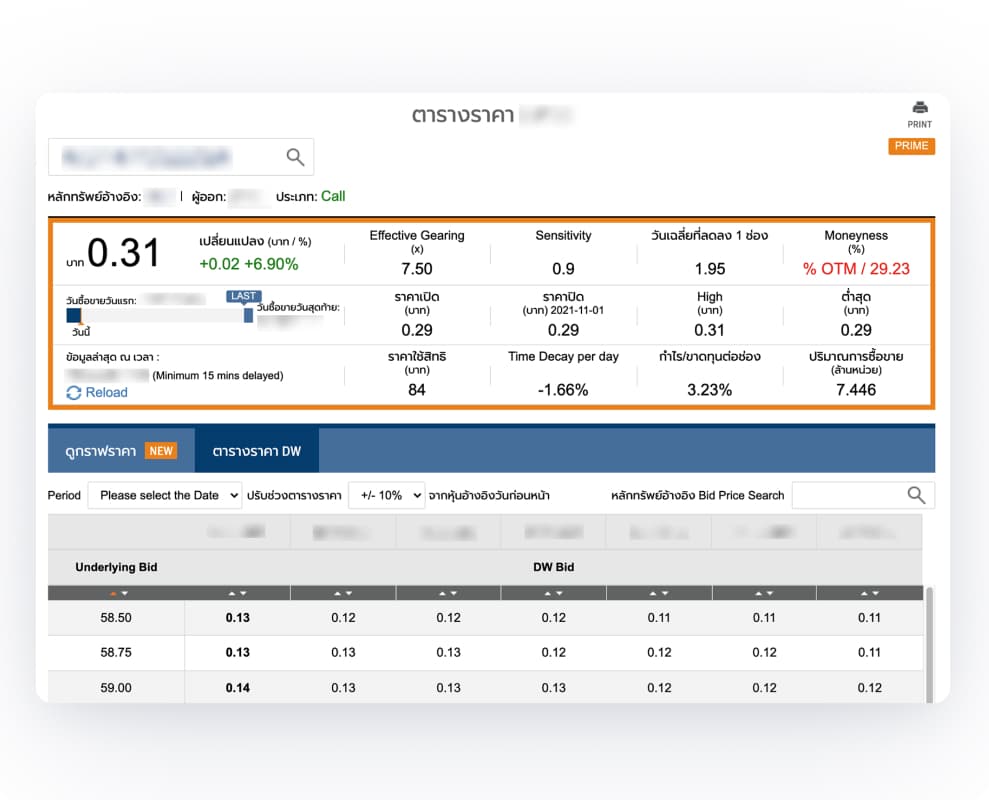 - Colour coded badges to distinguish between the 2 types of DW (Put and Call) making it faster to scan the table