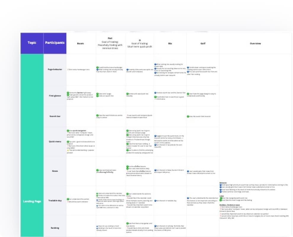 The user interviews revealed how differently each group makes investment decisions. Despite different levels of experience, they all felt the existing website gave them too much information and too little guidance on what actually mattered.