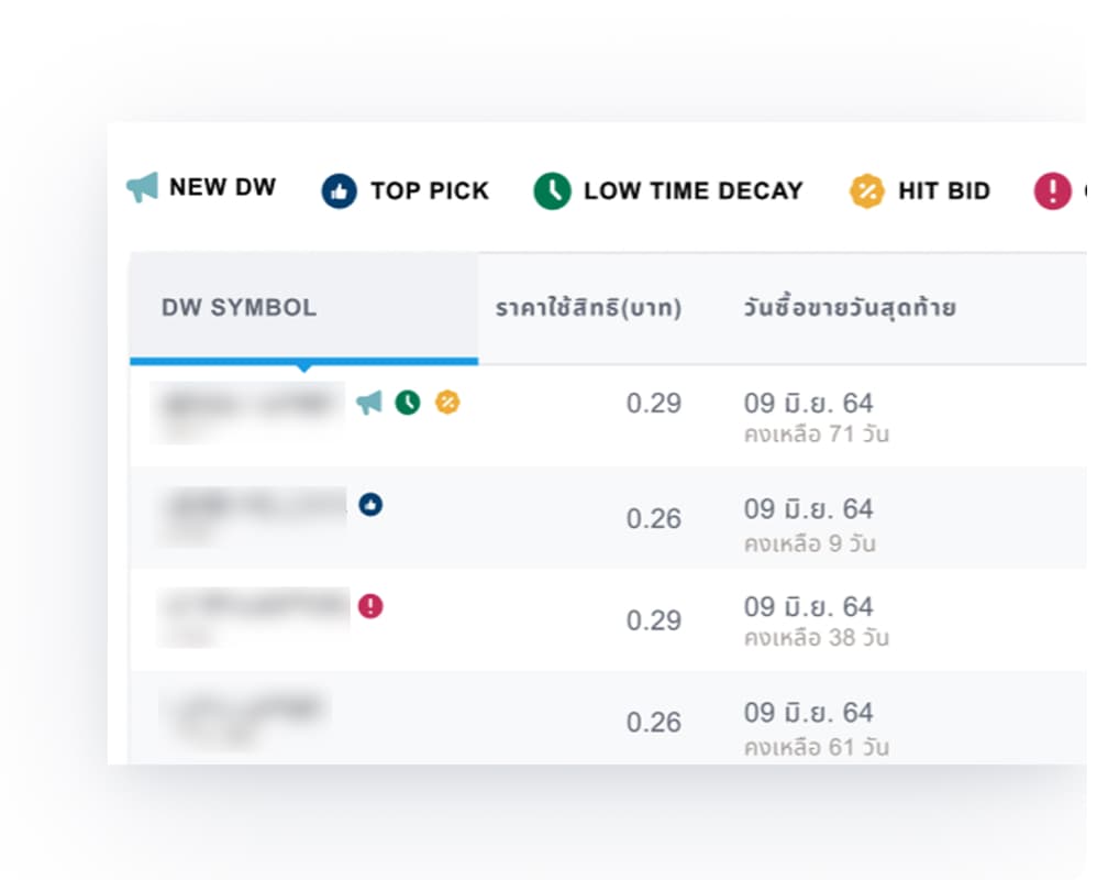 2. Visual Signal: Research showed that newbie investors rely on brokers, gurus, and analysts to guide them. To facilitate decision making on the website, I included icon indicator in the DW table. Each icon signal a market condition or DW’s property, for example, New DW, Top Pick, Low Time Decay, Hit Bid, Overpriced, Nearly Expire. These icons allow users to make their own judgment with more confidence and less time spent interpreting raw data. For a beginner, this is the guidance signal they were looking for. For a sophisticated user, it is a fast data filter they can choose to use or ignore.